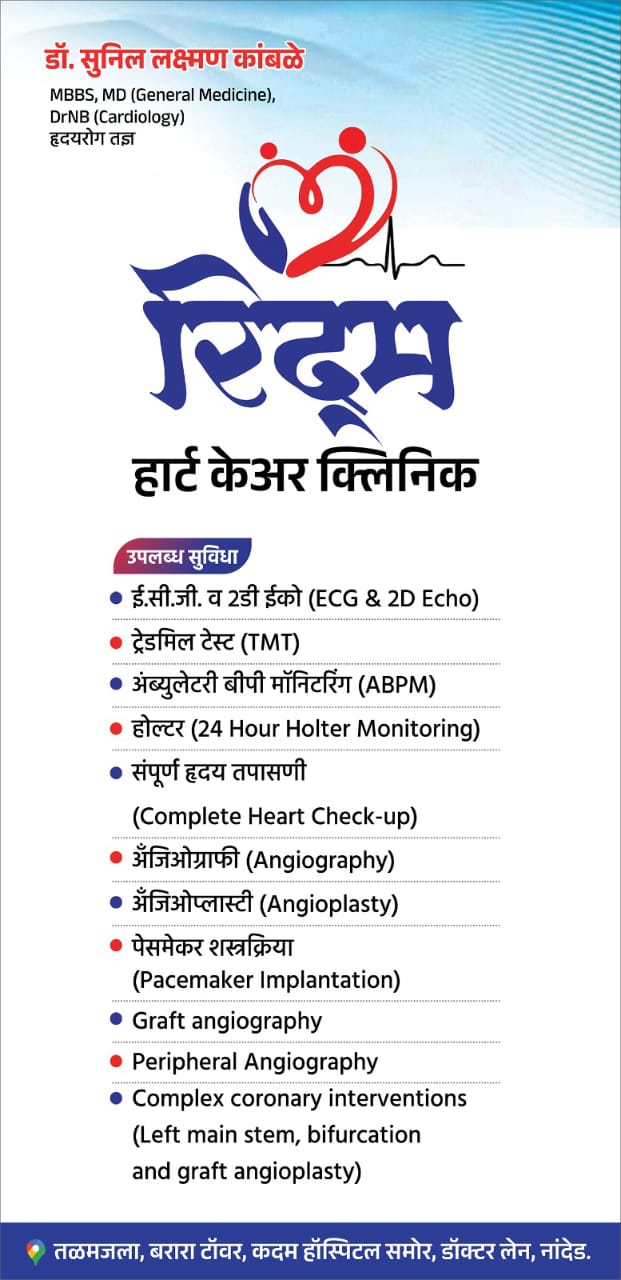 रिदम हार्ट केअर क्लिनिक, नांदेड – आपल्या हृदयाच्या आरोग्याचे विश्वसनीय ठिकाण.